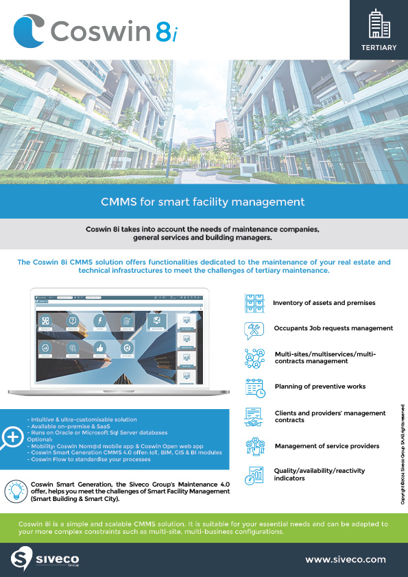 Discover the brochure for our Coswin CMMS software for the tertiary sector