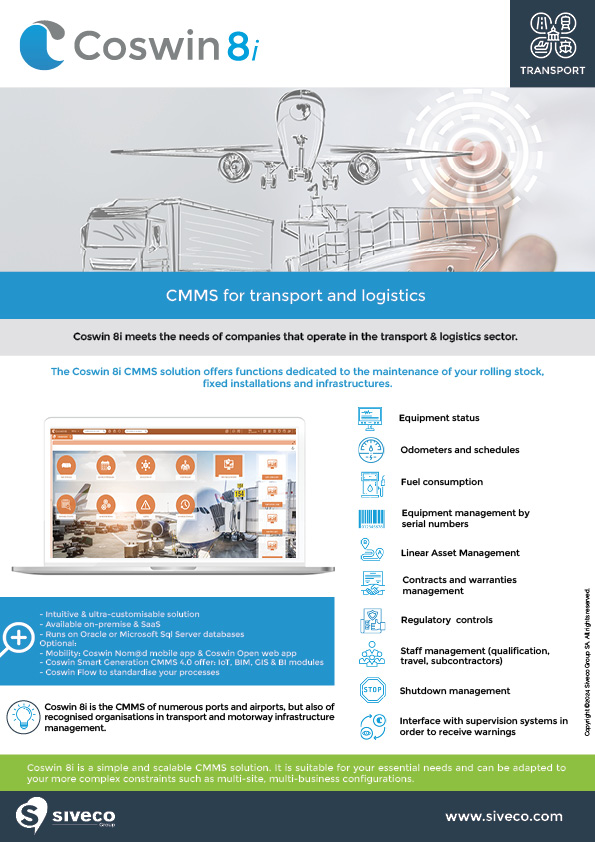 Discover the brochure for our Coswin CMMS software for the Transport sector